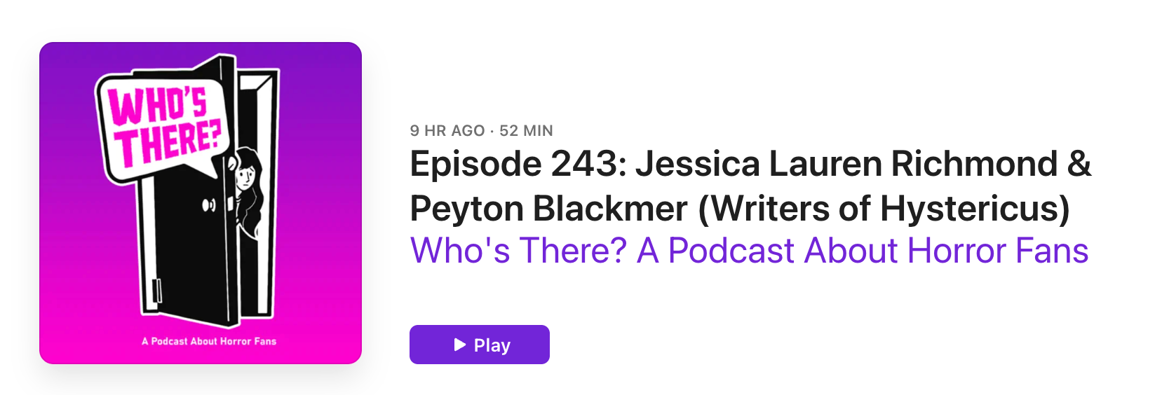 Proud to share that Ali Appelbaum was awarded Best Supporting Performance in a Short for her work in HYSTERICUS at NFFX - Nightmares 10th annual horror film festival in Columbus, Ohio!